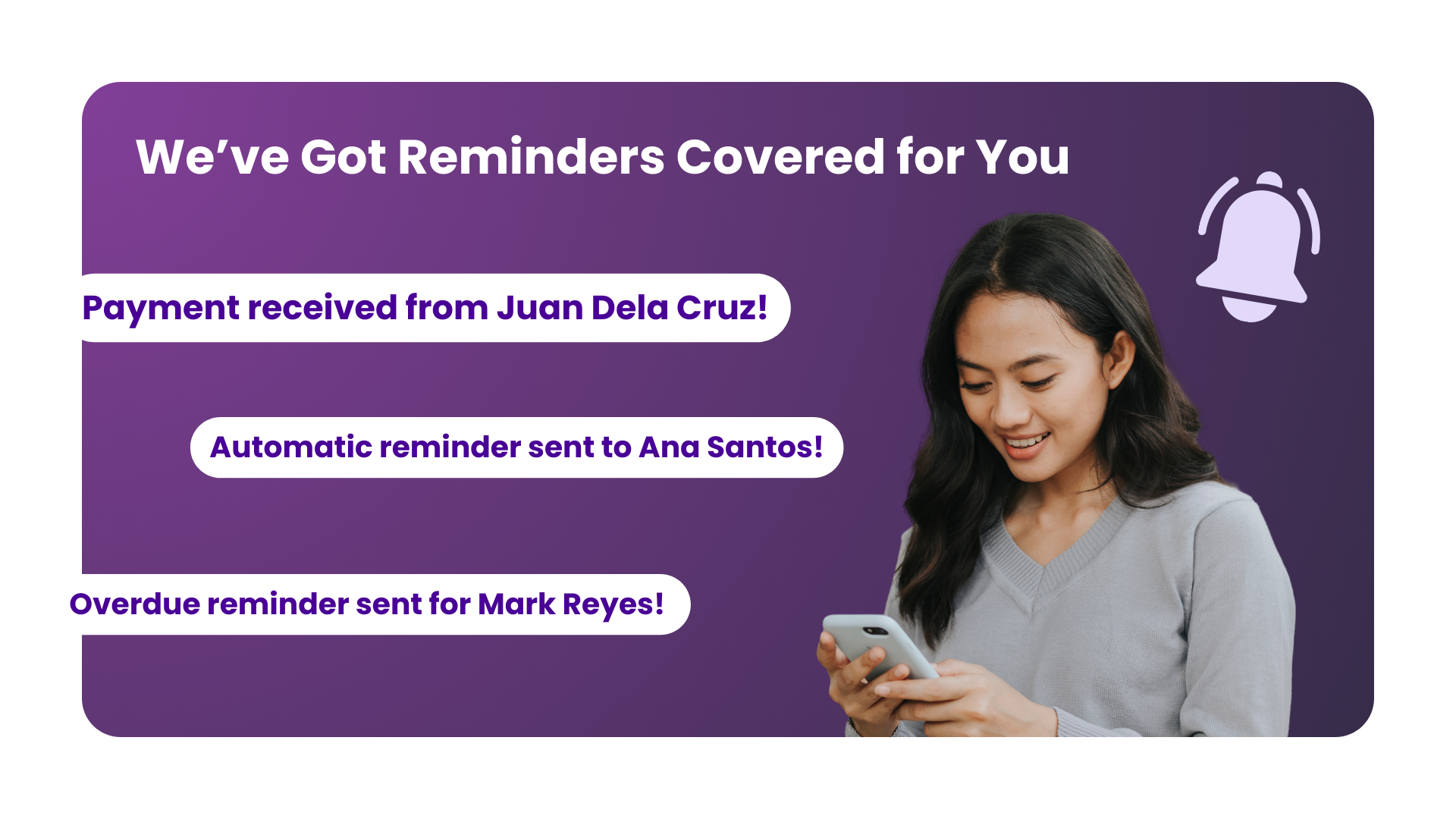 Customers receive automatic reminders before each payment, while you track what’s paid, pending, or overdue. No manual follow-ups, no confusion, no missed payments.