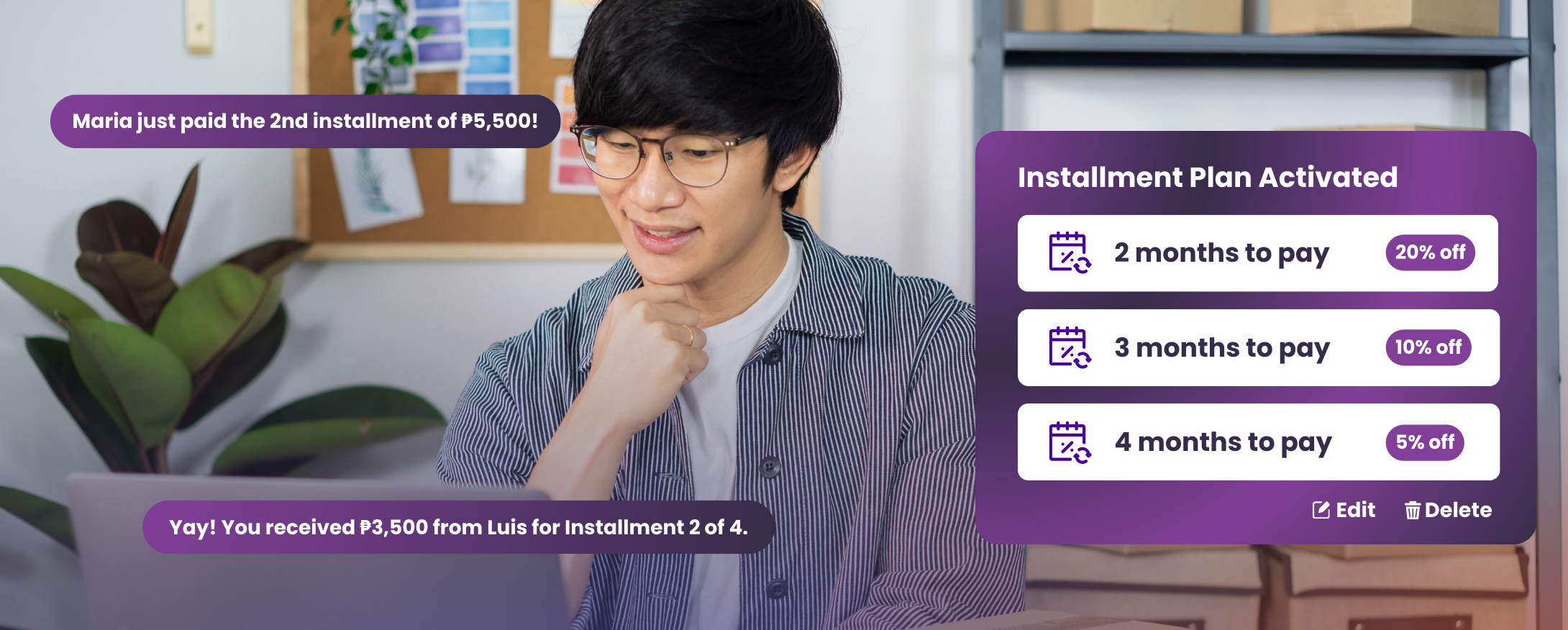 Offer flexible installment plans that help customers say “YES” faster. Split total amounts into smaller payments that’s affordable and easy to understand.